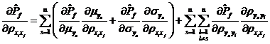 與獨立變量情況類似,變量相關情況下的可靠性試驗靈敏度定義為失效概率對基本變量分布參數(shù)的偏導數(shù),以