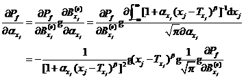 根據(jù)復(fù)合函數(shù)求導(dǎo)法則可得模糊失效概率對基本變量隸屬函數(shù)分布參數(shù)的可靠性試驗(yàn)靈敏度為