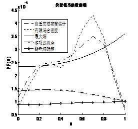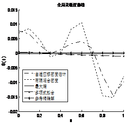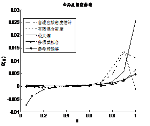 對于此工程算例,利用900個失效樣本點擬合概率密度函數和全局靈敏度。由圖8.7可以看出基于有限混合密度和自適應核密度估計方法得到的失效概率函數曲線波動較大,其他兩種方法雖也有較大誤差,但與參考精確解的曲線的趨勢較為貼近。由圖8.8可以看出基于最大熵密度估計法與正交多項式擬合概率密度法所得的全局靈敏度曲線與參考精確解的曲線相差不大,而基于有限混合密度法與自適應核密度估計法得到的全局靈敏度仍然波動較大。